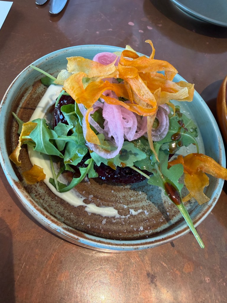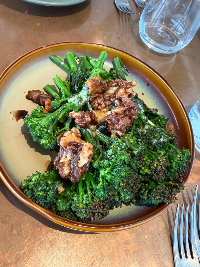 Starting with a beetroot tarte that had whipped goat cheese, arugula and crispy morsels (I can’t remember what they were but they added great crunch) – this was it for me. One bite in and I was lost in pure bliss! We also started with some broccolini, as any time a place has broccolini you can be sure Matt is going to order it. It was also incredibly delicious, especially with the candied walnuts 😋.