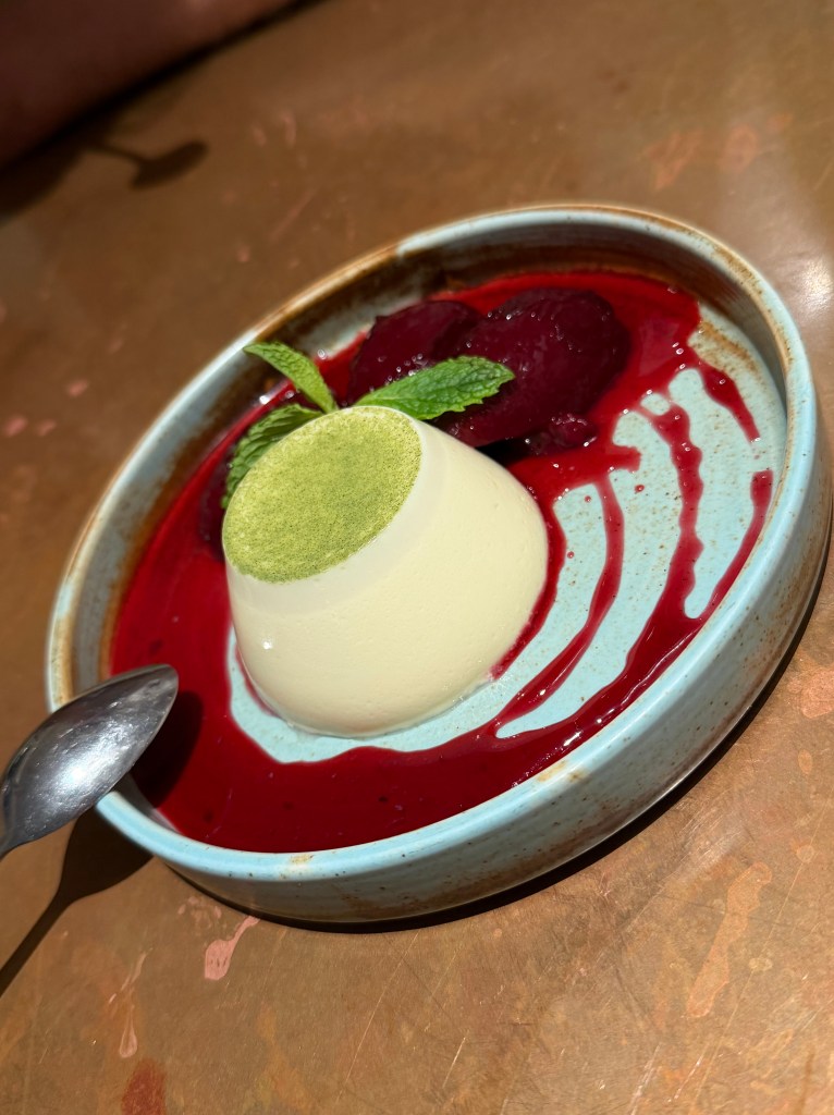 We made room for dessert after moving onto a Northlands Sauvignon blanc as I saw this dish come out and NEEDED to try it: Kaffir lime & lemongrass panna cotta served with poached plums. Every bit light and delicious.