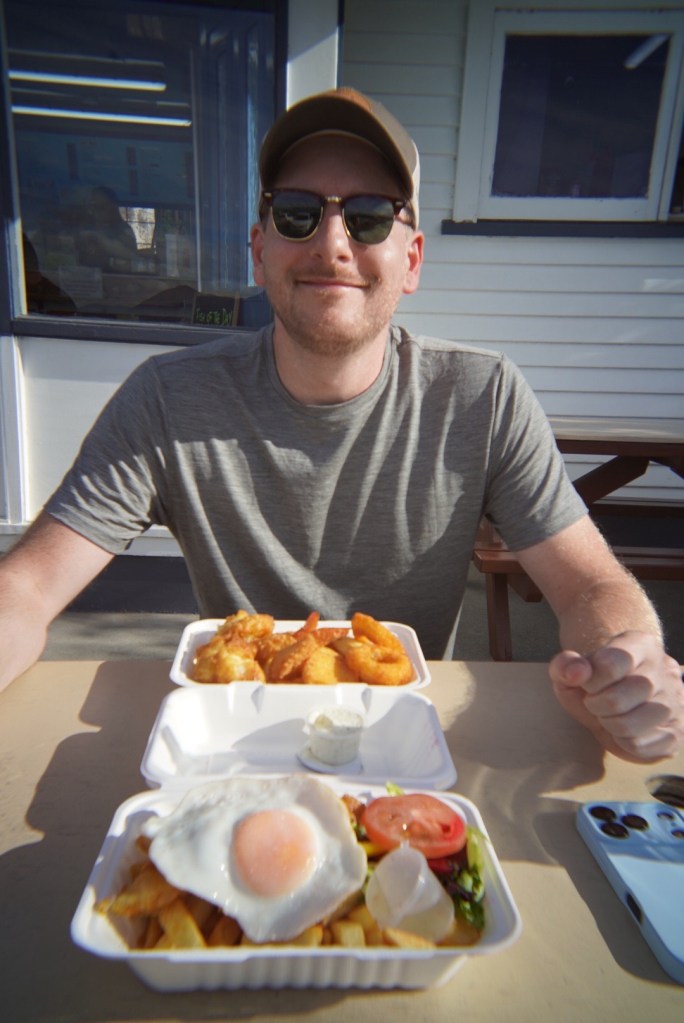By this point it seemed like yesterday since we ate the meat pies, so we fast walked back to the car in search of food! I spotted a yummy looking fish and chips place on the drive over and, like the meat pies, was ready to try another NZ specialty.