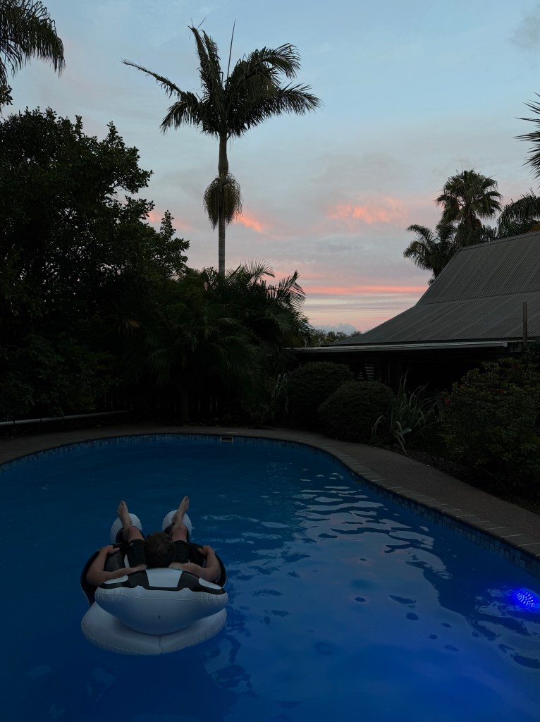 Back at our Airbnb for the night, we decided to jump in the hot tub for a bit to cure our achy bodies from all the driving. The birds were chirping and I really thought I was having a Snow White moment when a dove flew up to me- right up until it pooped in the hot tub as it aborted landing on my leg at the last second (don’t worry, I fished it out) 😩. After the poop fiasco, I convinced Matt to try my new favorite floaty and he agreed it was pretty darn awesome. Not a bad way to end day eight in New Zealand!