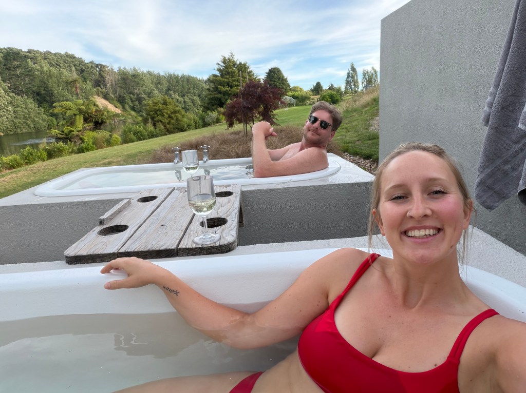 After tubbing, we cooked a yummy creamy orzo pasta with chicken sausage dinner. It was super late at this point, but we had spent so much time trying to find all the ingredients for this seemingly simple meal at a Woolworth’s grocery store on the 23rd, when all of Rotorua was also doing their Christmas food shopping. it was truly a mad house! I was not about to let all that effort go to waste- even if it was like 10pm by the time we ate! 🙈