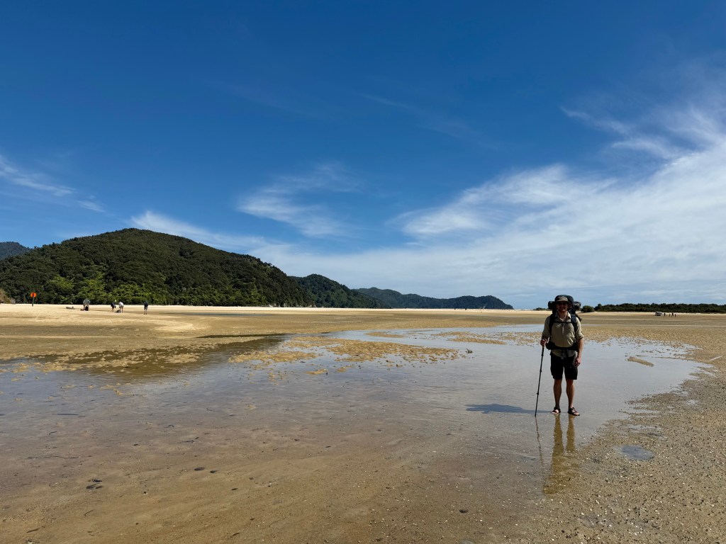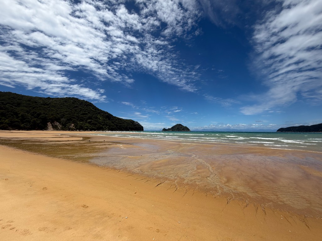 Needing a change of scenery, we decided to go for a short walk and check out the ‘hut’ the campsite had further inland (secretly hoping they served wine and burgers). It was a short walk that curved alongside the mountain on the opposite side of the lagoon as our campsite. To our dismay, it was a shack with some bunk beds for other backpackers who reserved them, and that was it. When we came back to our site, we discovered that the folks next to us had packed up and left due to the weather. We also found out that the birds had gotten inside our tent annex and managed to get inside his backpack to not only eat snacks but they also shit all over it and our tent. It smelled sooo bad. Beyond that, since Abel Tasman is a nature conservatory, it is very much a ‘pack it in, pack it out’ environment-aka there isn’t much to work with them you suddenly need to clean bird shit off of things.