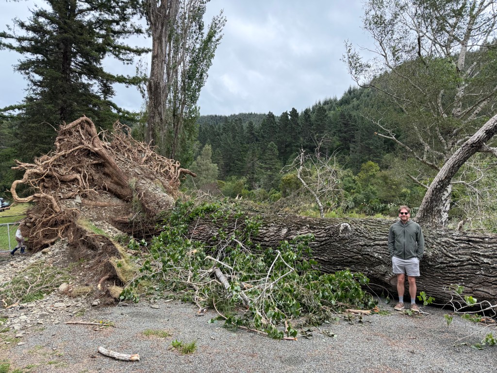 Upon check in, the woman at the front desk asked if we had been out in the storm (I think the towel ponchos gave it away) and Matt told her that we had been camping in a tent in Abel Tasman. She burst out laughing in disbelief as she told us the whole region had been rocked by the storm. People were without power, there was flooding, and huge trees had blown down all over town. That was sad and shocking but also felt so validating given our struggle! The receptionist was so nice and informed us we’d been upgraded to a bigger room- we opened the door to our room to discover what was practically an apartment! It was huge! And it had a bathtub which we really needed to properly clean of all the bird shit items with detergent and hot water.