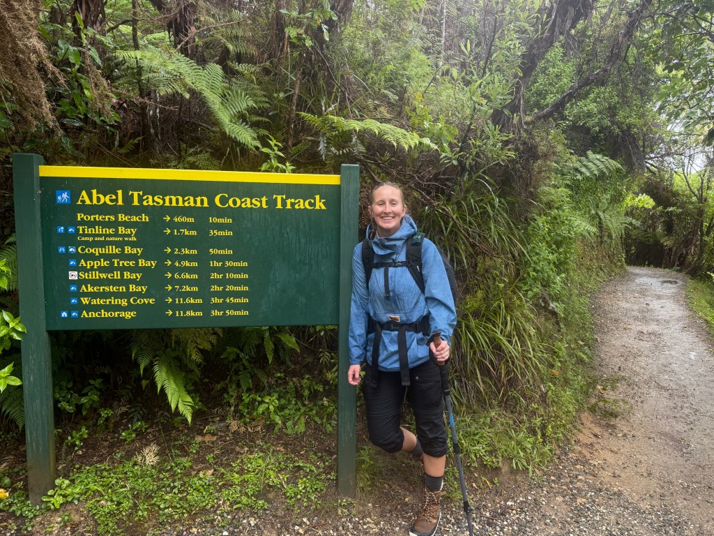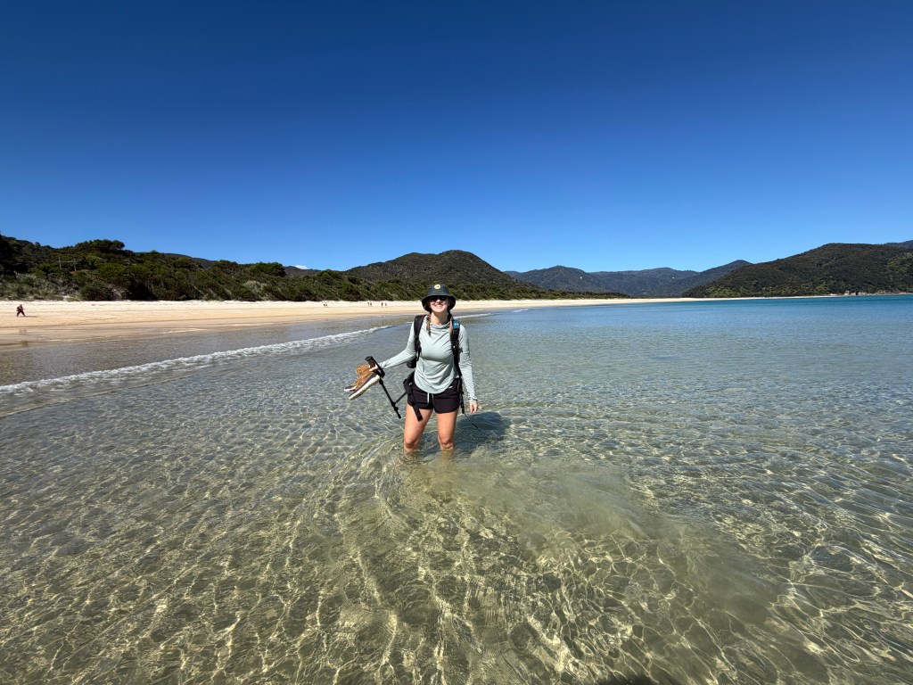 We luckily made good timing and crossed another low tide trail at Torrent Bay, avoiding an additional 2 hour detour around. But there was still shallow streams from the rain so our shoes were absolutely soaking wet from that point on. Once we made it to Anchorage Bay, one of the next largest campsites- we were hopeful it would have similar amenities as Awaroa, where we started- It did not.