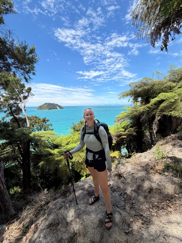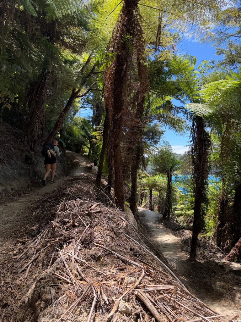 The forest surrounding us was absolutely incredible. I have never seen a place quite like that first day in Abel Tasman in my life. Some of the trees looked like they were the inspiration behind Dr Seuss’ creations: Tall and lengthy with little blobs of leaves at the tops, swaying together in a breeze. Every shade of green, and then the piercing blue of the water beyond would poke through. Ferns everywhere. Matt and I were in heaven.
