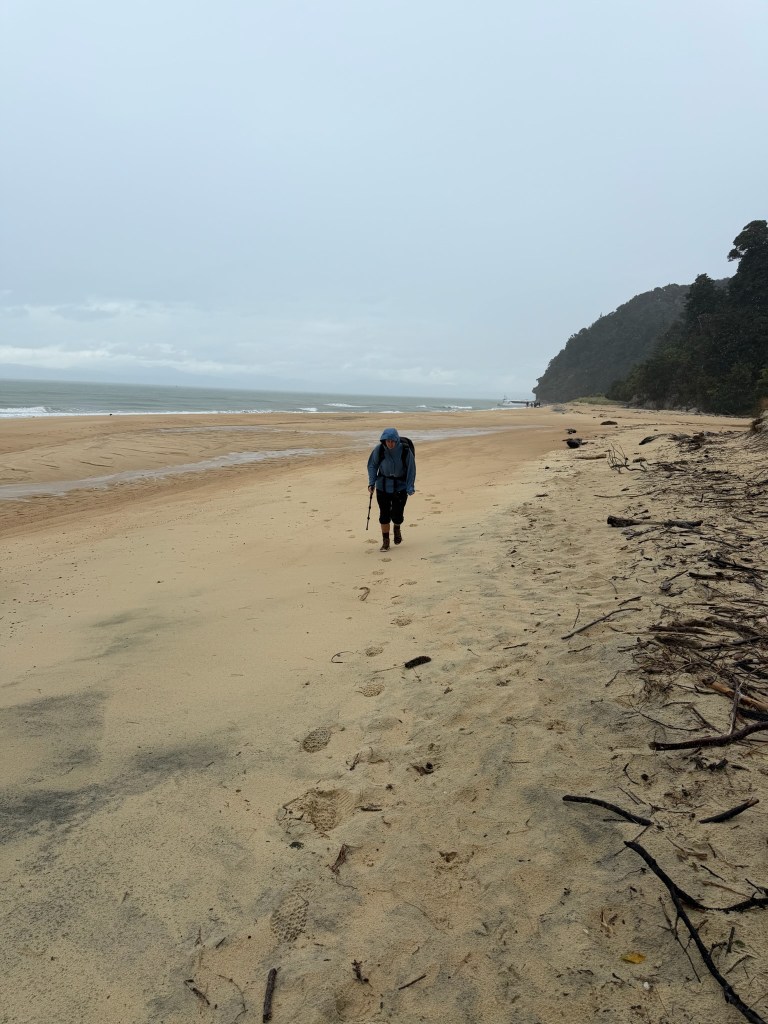 We searched Anchorage Bay beach for the Aqua Taxis that we had ridden in on, as this was also a frequent stop of theirs. We thought if we could just find a boat, we could get a ride out of here. Hiking a 2 day trek in 1 after the night we had was feeling like a near impossible feat at the moment, given our gear was soaked through and our legs were cramping.