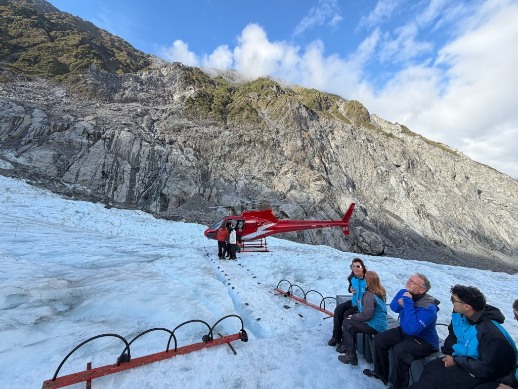 On January 4th, we awoke bright and early, hopeful that our last-minute charter to fly up and hike around Fox Glacier would get the “go” for good weather. We packed up the car (I’d like to think we’ve gotten really good at this by now) and drove the short distance down the street to Fox Glacier Guiding. We arrived nice and early as instructed and were told our morning flight was looking good to leave on time. We were stoked!